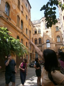 Festetics Palotában és egy ’56-os forradalomban szerepet játszó bérház udvarán. Túránk egy roma muzsikus családnál ért véget, ahol a muzsikusok múltjáról és mai lehetőségeiről beszélgettünk, és természetesen a hegedűszó is felcsendült.
