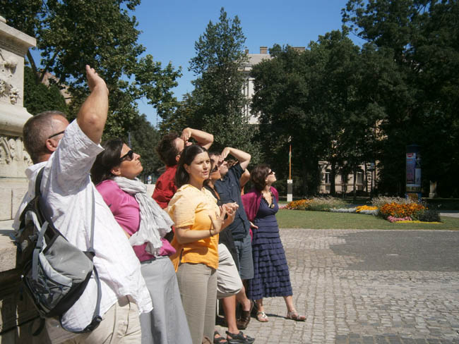 Cs. I.: A diáktúráink 1-1,5 órásak, és délelőttönként, iskolaidőben tartjuk őket. Itt valóság lesz, amit csak a tankönyvek lapjain tanultak. Láthatják, hol fogták el Batthyány Lajost, az első magyar miniszterelnökünket, és megelevenedik előttük a középkori és római kori Pest élete is. Élő történelemóra ez, irodalmi, művészettörténeti fűszerezéssel. Közben pedig osztálykirándulás, közös élmény, bóklászás Pest utcáin, amit alig ismernek, hiszen sokukat kocsival szállítják be a szülők, vagy csak egy bizonyos területen közlekednek.