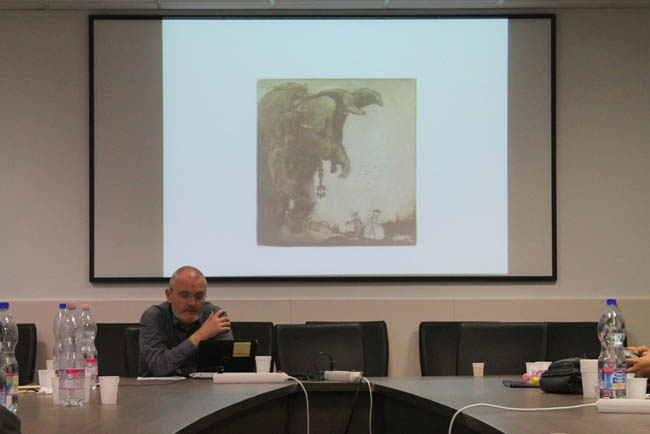 Trónok harca tulajdonképpen nem fantasy, hanem alternatív történelmi regény, már kevesen értünk egyet a teremben. Szerinte George R. R. Martin nem teremtett sajátos világot (szemben Tolkien minden elemében fantasztikus világával), az uralkodóházak megfeleltethetőek valós dinasztiáknak, és ha kivesszük a történetből a sárkányokat, ha leválasztjuk róla a fantasztikumot, olyan, mintha a Rózsák háborúja jelenne meg előttünk. A fantasy műfaján belül viszont jól elkülöníthető az urban fantasy: Hegedűs Norbert sorolja a példákat a Neil Gaiman-féle