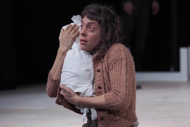 Amikor belépünk a nézőtérre, a színészek már a színpadon vannak, készülődnek, pakolásznak, próbálnak, így azonnal tudjuk, hogy elidegenítésből nem lesz hiány. Ahogy Fullajtár Andrea is mondja az említett