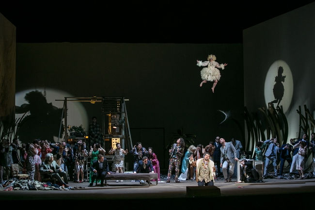 kizökkent időt, amit már nem lehet helyre billenteni. Ariellel és Kalibánnal kapcsolatban kérdés marad, hogy tudnak-e majd élni visszanyert szabadságukkal? Az előadás végén felemelkednek a fehér színfalak, és feltárul a hatalmas színpad üres feketesége. A szigetlakók világa kitágul, megszabadulnak kötöttségeiktől, de mindez inkább nyugtalanító, mint felszabadító érzéseket vált ki belőlük. A vizuálisan ügyesen megkomponált színpadképek érzékletesen teremtik meg az előadás alaphangulatát, amely teljes összhangban van a librettóval és a zenével. A rendezés egyszerű utalásrendszerével megkönnyíti a közönség számára ismeretlen darab befogadását.