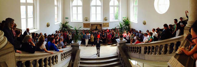 A már említett kreatív éneklés az egyik legfontosabb eleme ennek, de nagyon lényeges a helyszínválasztás is. Például nem feltétlenül koncerttermekben adjuk elő a műveket, hanem lépcsőházakban, parkolóházakban. A